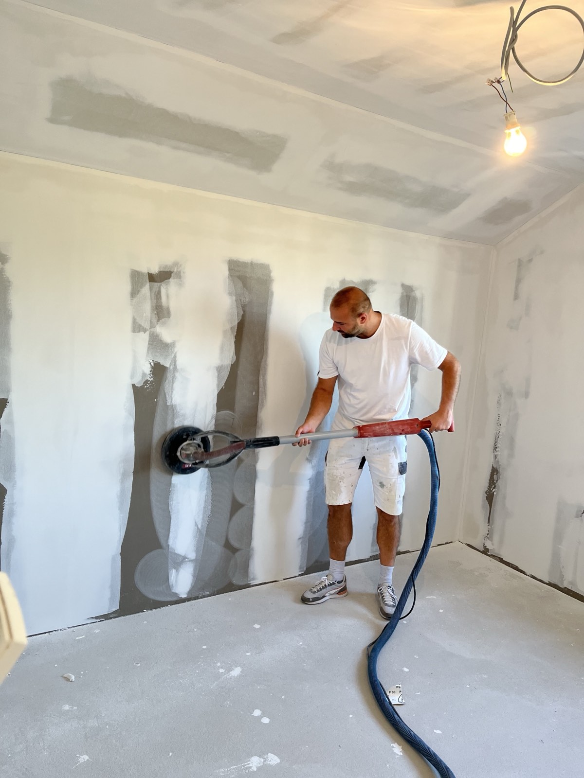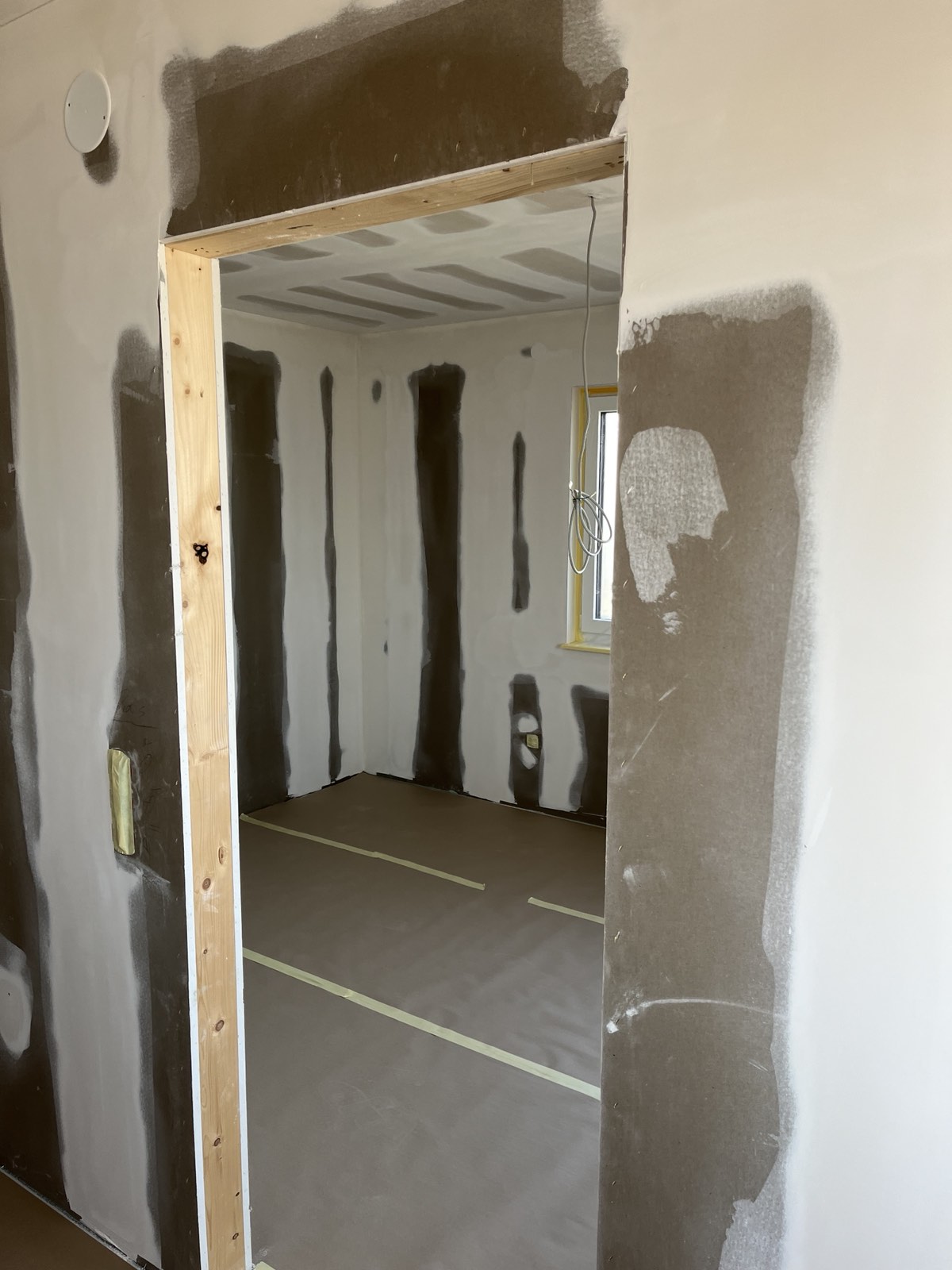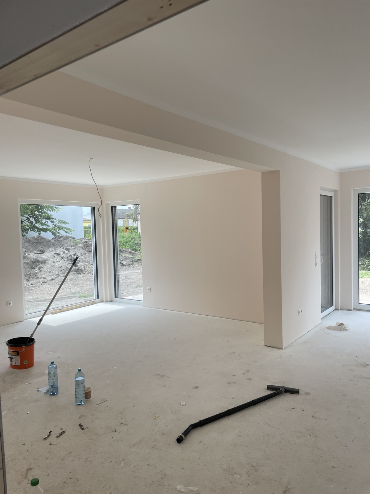 Komplettes Spachteln in Q2-Qualität und Malerarbeiten bei einem ELK – Fertighaus